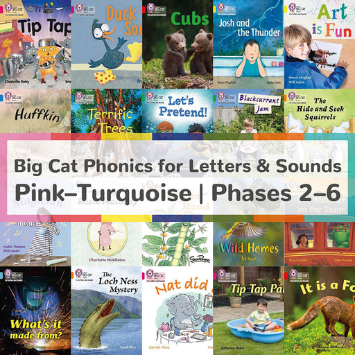 Big Cat Phonics for Letters & Sounds Pink A–Turquoise/Phases 2–6 (44 Readers)In stockThis Collins Big Cat Phonics for Letters and Sounds Set contains 44 exciting fully decodable fiction and non-fiction reading books to enthuse and i...