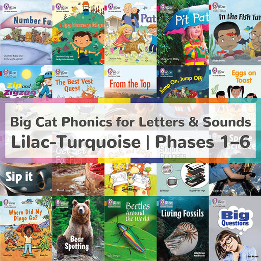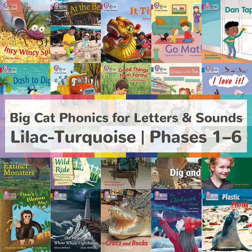 Big Cat Phonics for Letters & Sounds Lilac–Turquoise/Phases 1–6 (60 Readers)In stockCollins Big Cat Phonics for Letters and Sounds features exciting fully decodable fiction and non-fiction readers that are expertly aligned to Lette...
